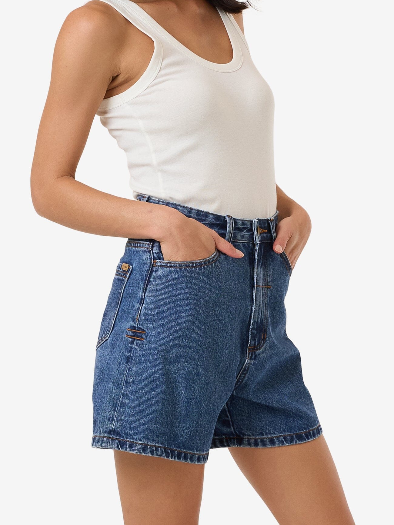 A warm-weather staple straight from the 90s, this Koko Short in Double Rinsed Blues pairs vintage inspiration with a relaxed, laidback vibe. With a high-rise waist and classic multi-pocket styling, it's an easy choice for your go-to summer ensemble. Tuck in a tank top or pair with an oversized tee to complete your look.