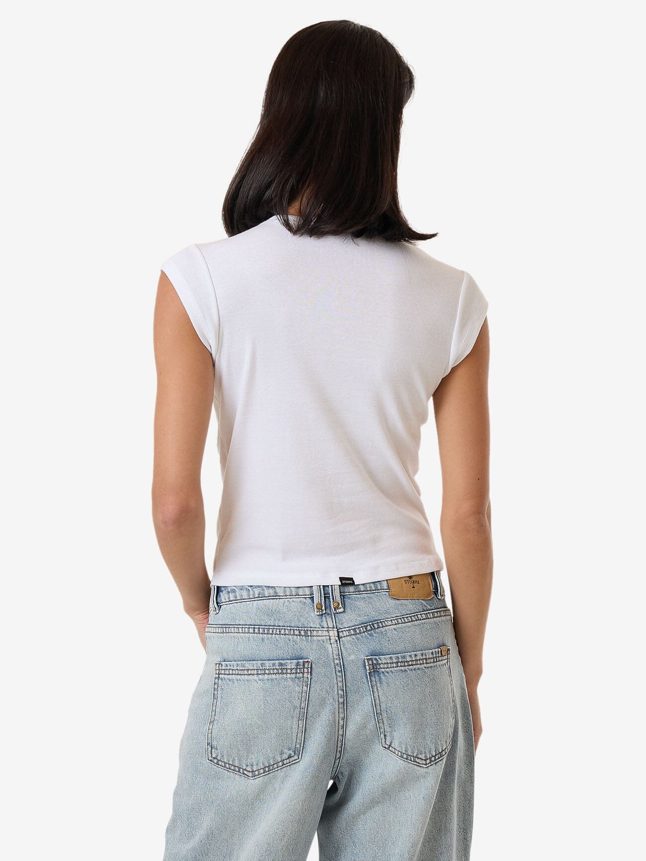 This TC Foundation Cap Sleeve Tee in White is your timeless wardrobe staple updated with modern comfort and a figure-flattering slim fit. Made from premium cotton jersey for a soft, refreshing feel you can wear all day. This women's tank features an updated, elevated design with a scoop neckline, cap sleeves and a Thrills logo to finish things off.